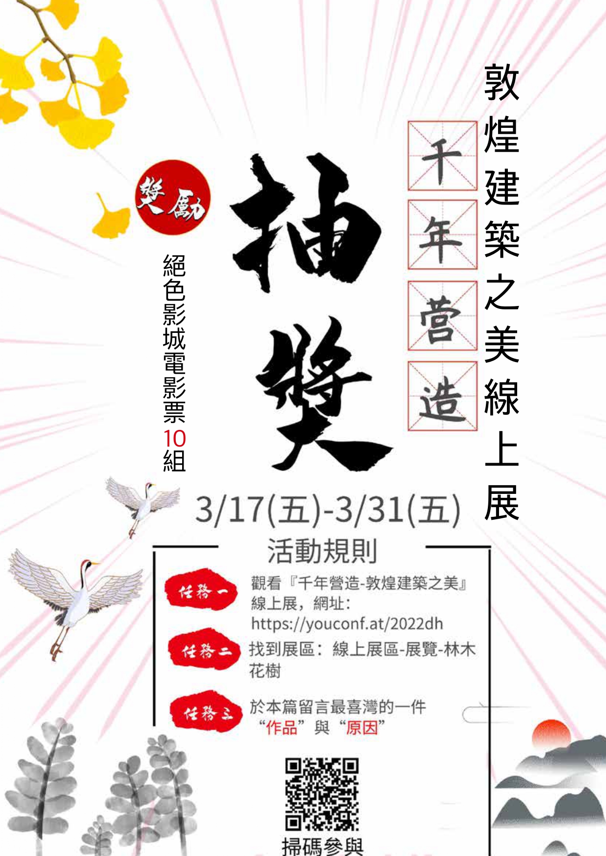 ✅ 步驟一: 觀看「千年營造─敦煌建築之美」線上展,網址:https://youconf.at/2022dh