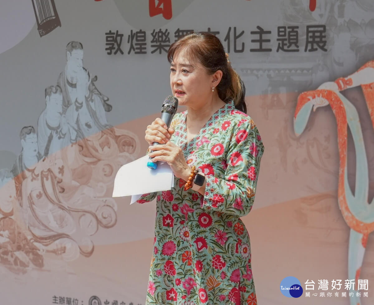 沈春池文教基金會秘書長石靜文致詞時也特別提起,「敦煌文化藝術展」自2016年起,已巡迴臺灣北、中、南多所大專院校,讓青年學子得以近距離感受敦煌藝術的魅力。文化的傳承與發展需向下扎根,向外弘揚,期待藉由展覽讓青年學子認識中華文化的藝術底蘊,並在日後以創新視角持續發展與傳承。