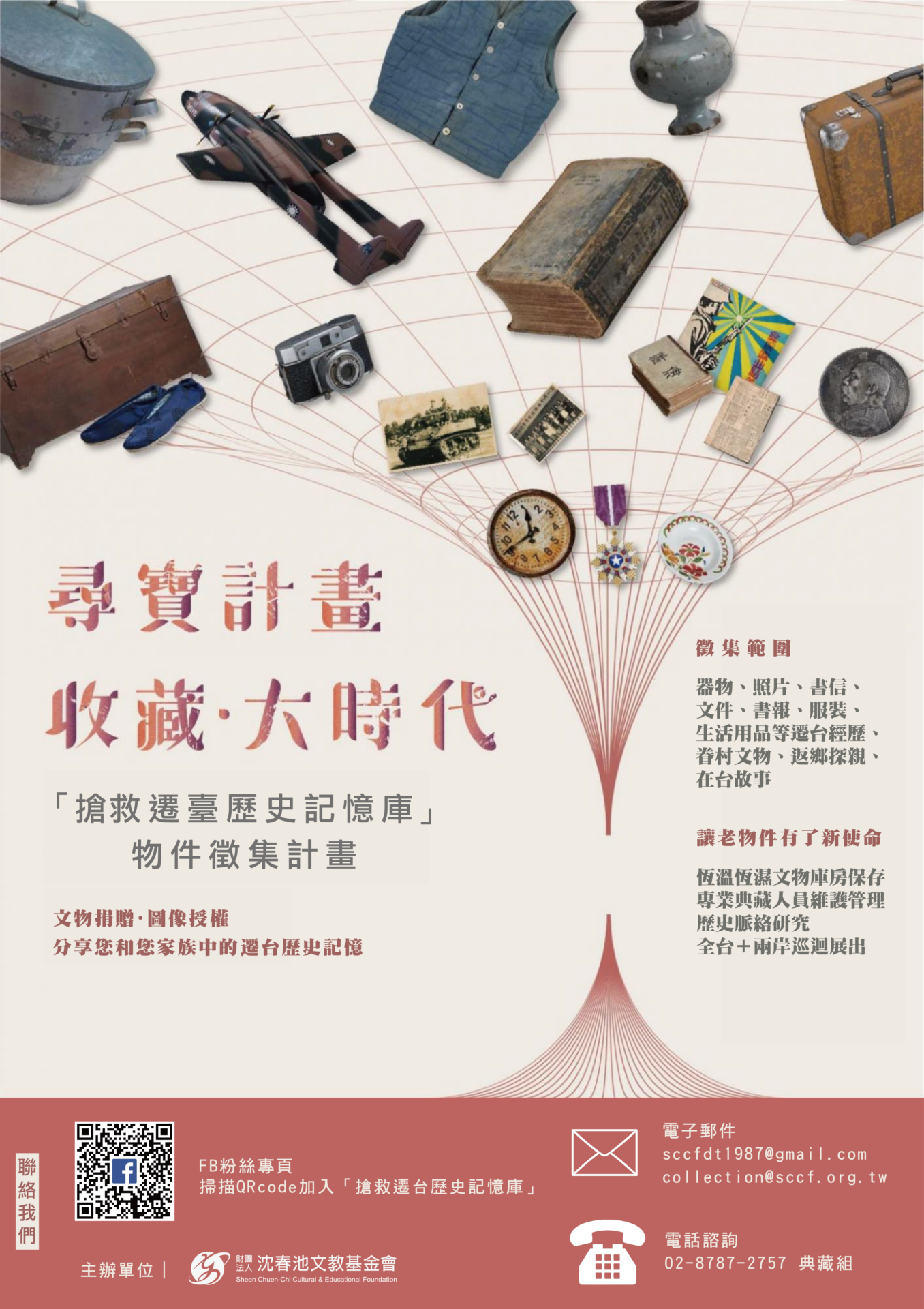 ●收件方式:Email、FB粉絲頁私訊【搶救遷臺歷史記憶庫】、電話聯繫
