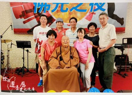 孫朝(後排左)在佛山盃籃球賽的佛光之夜活動 ,與星雲大師合影。 孫朝在九十二學年度高中籃球甲級聯賽,以高中體總秘書長身份,