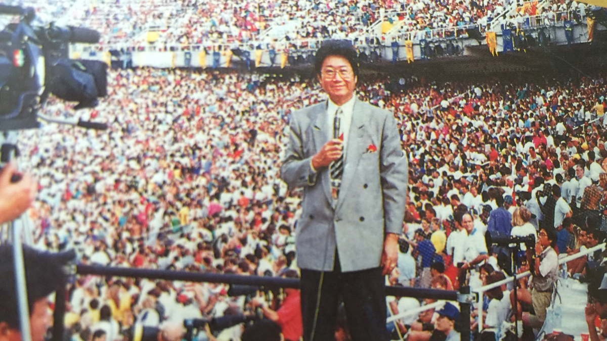 傅達仁於慕尼黑奧運開幕現場轉播。