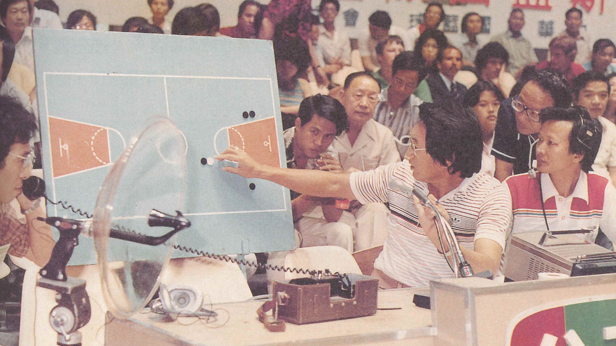 傅達仁轉播瓊斯盃籃球賽現場。