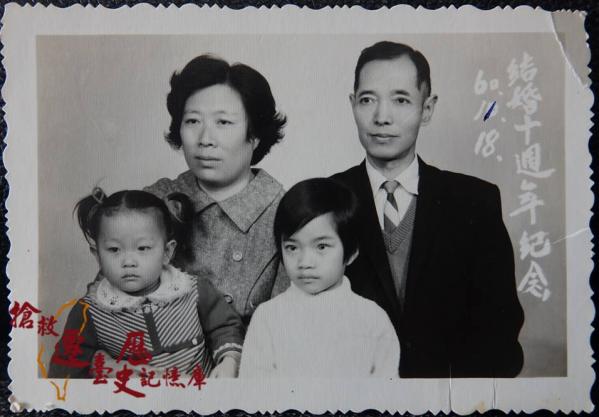 魯蓮芝與先生(湯森榮)及大女兒(前右)、小女兒(前左)合影。