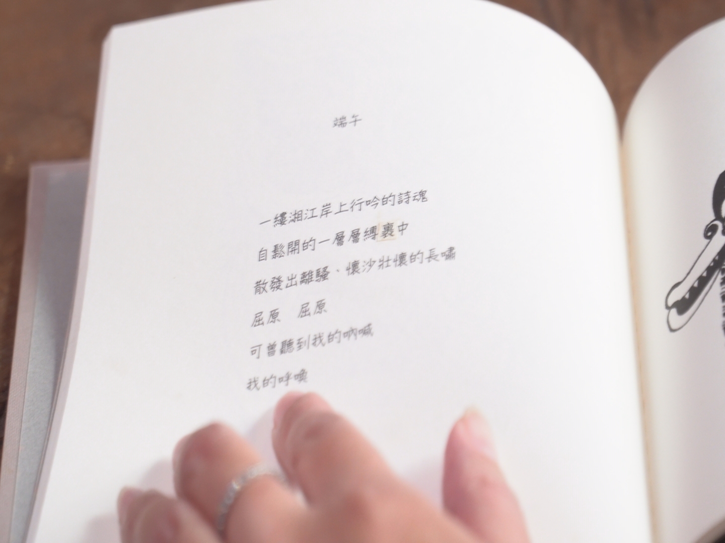 十歲開始歷經戰亂,到撤退至澎湖遇上七一三事件,前半生的苦難,讓周廷奎不免想起與他同為五月五日出生的屈原,周廷奎認為,他與屈原同樣都有生於大時代,不被理解、迫於無奈,而且有志難伸的情緒,「這一生走到這個階段,跟屈原有點同樣的心情。」喜歡寫詩的周廷奎,將自己被時間洪流推著走的心境寫成了短詩「端午」: