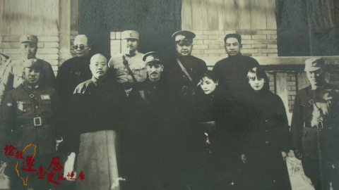 王靖國將軍(前排左一)與蔣委員長(前排右四)及蔣宋美齡夫人(前排右三)等人合影