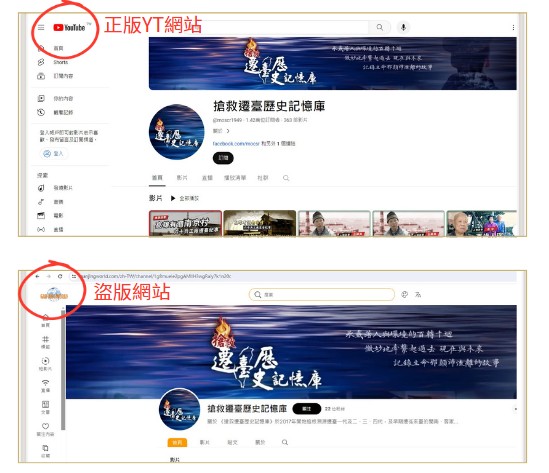沈春池文教基金會創立的「搶救遷台歷史記憶庫」YOUTUBE頻道多年,深受廣大民眾喜愛 。日前有不明人士未經許可,將YT頻道所有影片內容擅自複製在其他網站上,並使用「搶救遷臺歷史記憶庫」的圖片、文字及所有說明內容。經查該網站及其公司跟沈春池文教基金會並無任何關係,亦無業務往來。