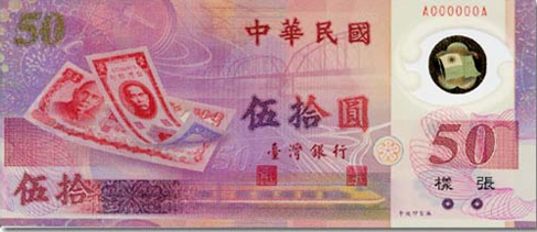 新臺幣伍拾圓 鈔券為吳紹起團隊研發印製的成果之一。