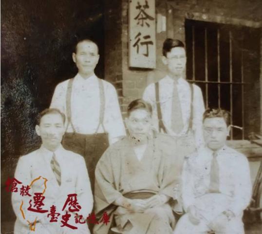 李朝舟(右)返台主持豐南商事株式會社重役會-與北川氏(左)合影                                                  李朝舟(前排中)與李團居(右).王玉慶(後左)攝於豐南茶行