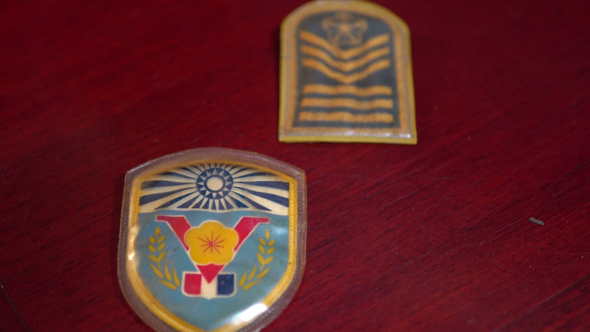 青年軍徽章(前)與陸軍文書上士徽章(後)