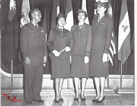 56年4月胡慧林獲美國空軍航空護士訓練班結訓證書,與校長 (左起) 、班主任、教育長合影